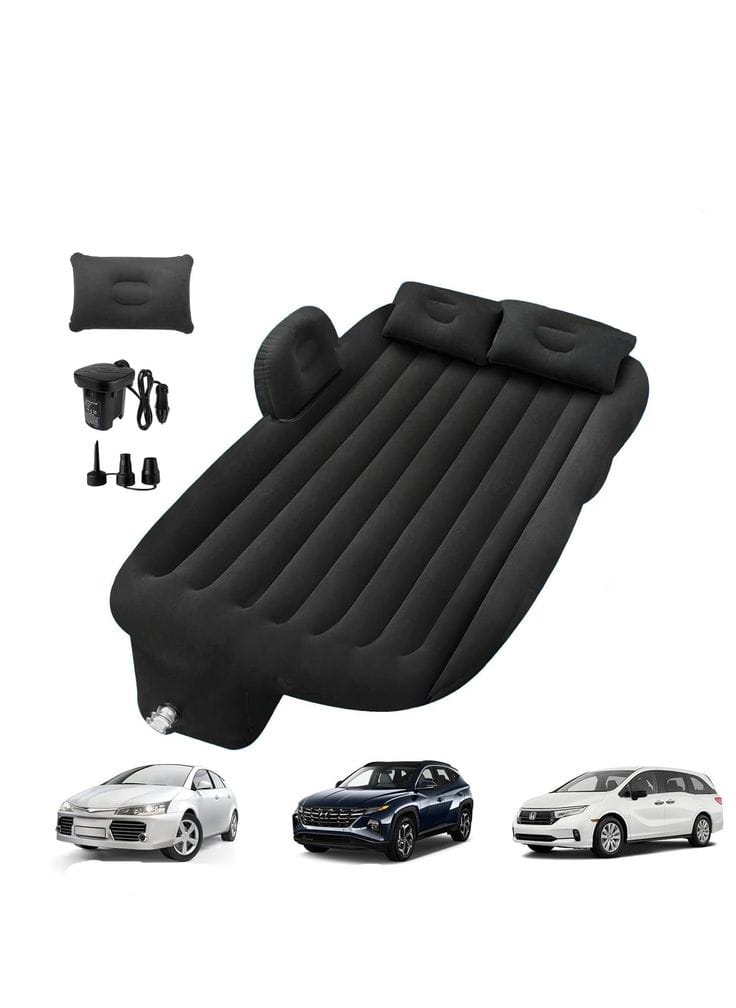 This set includes 1 inflatable backseat mattress, 1 children/pet safety baffle, 2 air pillows, 1 air pump, 3 different gas nozzles, 2 air foot piers, 2 backup fabric, 1 Carton.